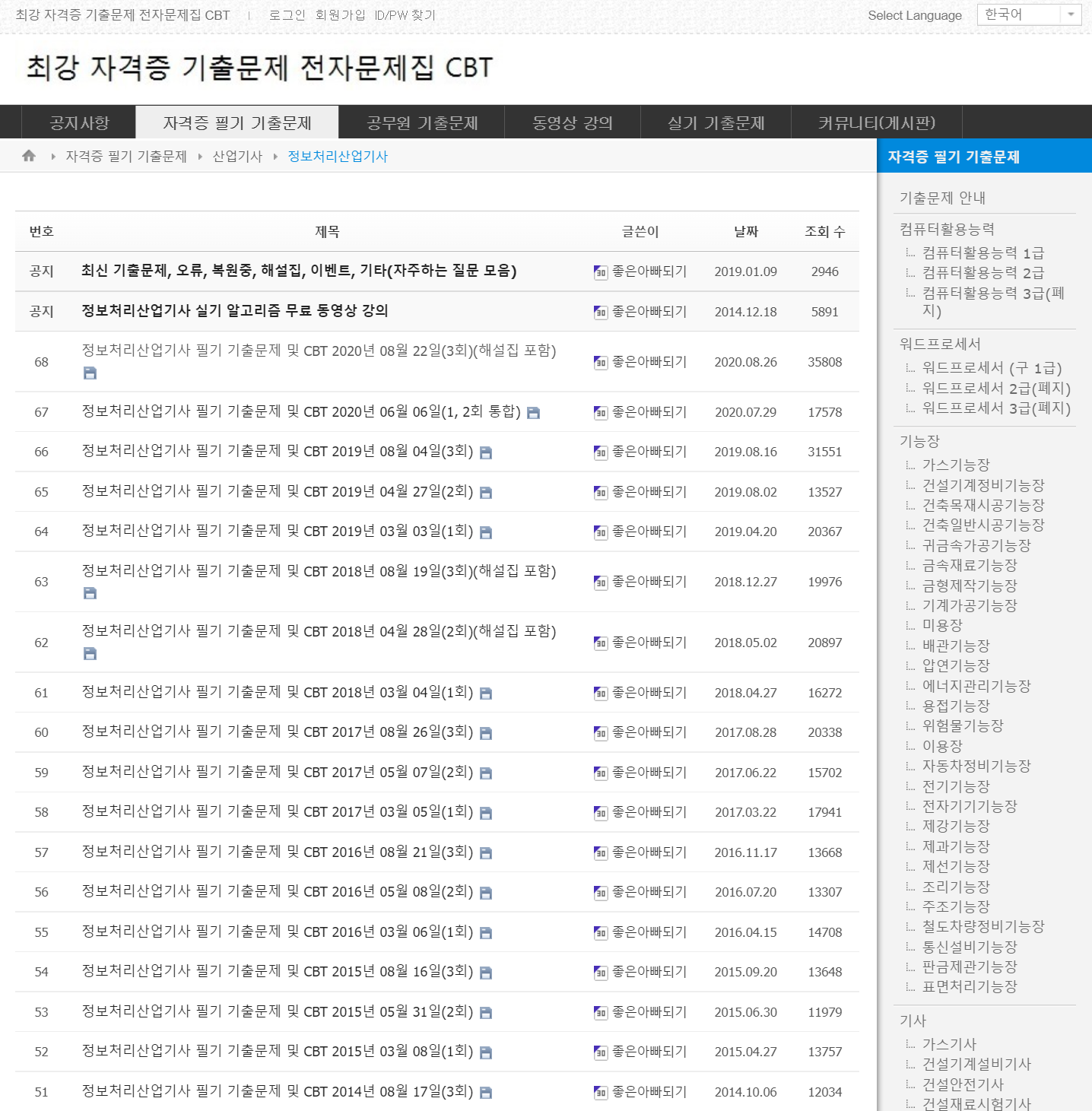 정보처리산업기사 기출 사이트인데 여기서 기출 확인해서 공부할 예정이다.