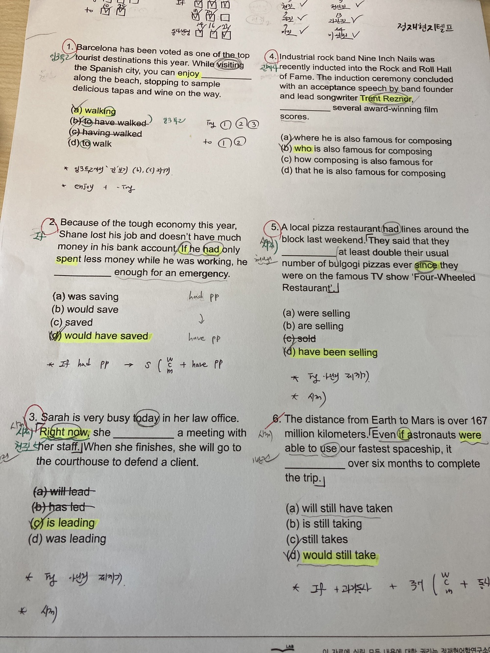 -정재현지텔프 26기출문제 풀기 + 유튜브 정리하기 + 문법 복습하기