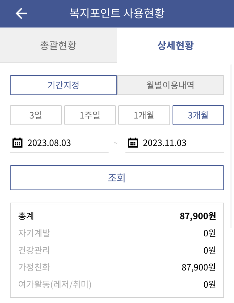 나는 분기별로 약 8만원~9만원 사이의 돈을 받았는데 약 35에서 36만 원 정도의 복지 포인트였다.