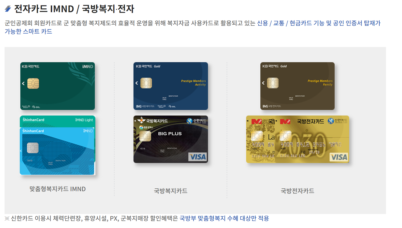위에 보이는 대략 6종류의 카드들 중에서 본인이 잘 쓰는 주거래 은행이나 혜택이 좋은 카드를 선택해서 발급받으면 매 분기마다 복지 포인트가 지급되는 방식이다.