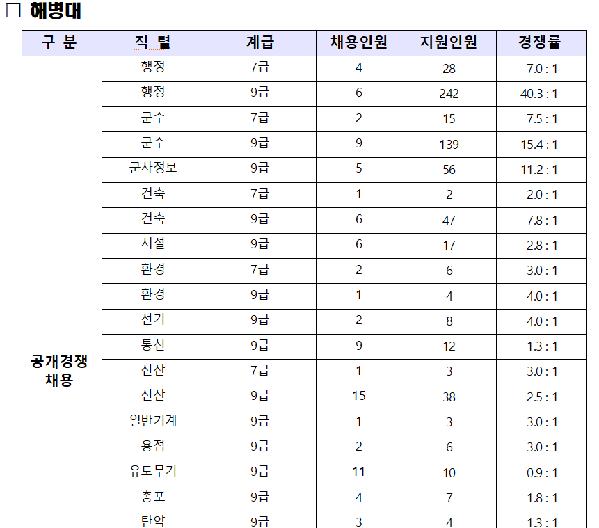 2021년 해병대 일반군무원 경쟁률 [공채/경채][핵심] 군무원 합격 치트키/군무원 정보 2021. 5. 20. 21:30728x90반응형SMALL