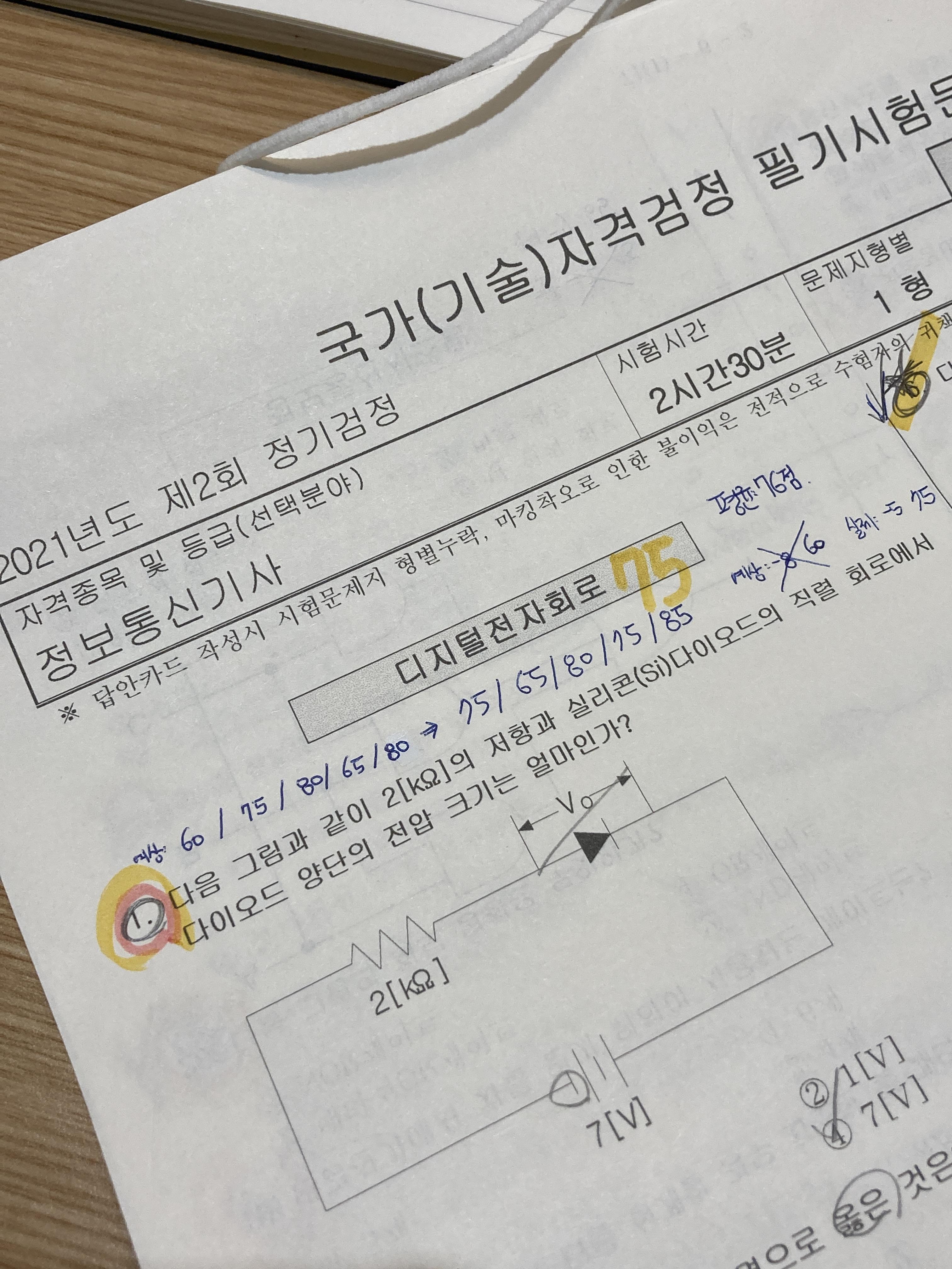 1회 차 때 여유롭게 봐도 붙게거니 하면서 안일하게 시험 쳤다가 2문제 차이로 불합격했어서 충격이 꽤 컸었는데... 2회 차 가채점 결과 평균 76점 맞았다! 사실 엄청난게 아닐 수 있지만 노력한 만큼 결과가 나올 때의 기분은 매번 좋은 것 같다.