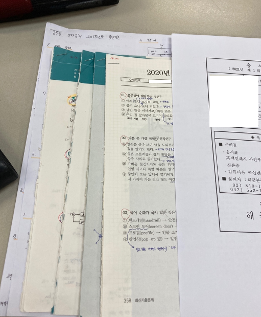코로나로 인해서 QR코드 확인 및 발열체크 성명과 수험표까지 확인을 하고 입실을 해야 했고, 시험장도 한 여름이라 너무 더웠어서 많이 힘들었다. 하나둘씩 들어오는 수험생들 보면서 계속해서 긴장감이 고조되었던 거 같다.