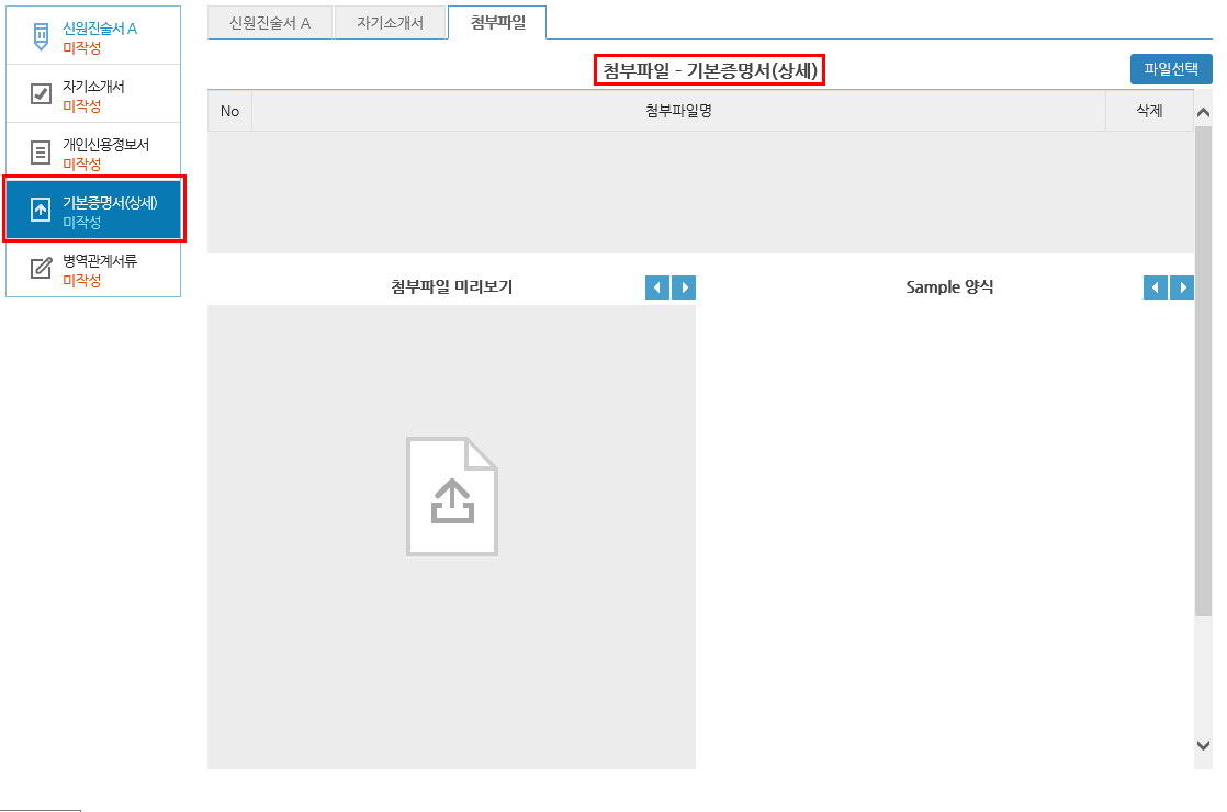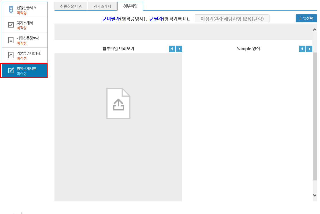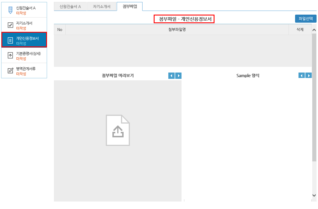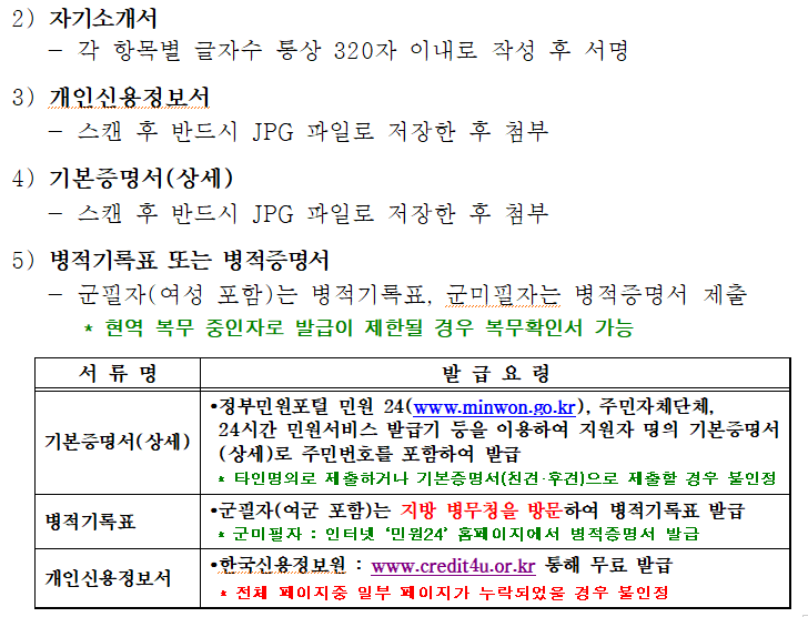 개인신용정보서 / 기본 증명서 / 병역관계 서류 작성