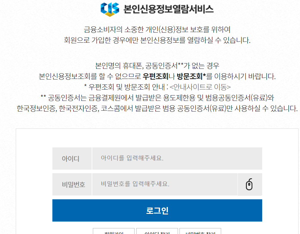 한국 신용 정보원(www.credit4u.or.kr)들어가서 발급을 받으면 된다.