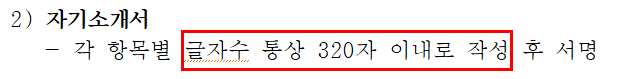자기소개서의 경우에는 최대 700Byte까지 작성을 할 수 있게 되어 있지만, 공고문에 올라와 있는 안내문을 참고하면