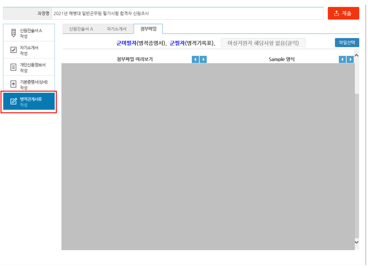 병적 기록표 관련된 내용 앞선 게시물에서 상세하게 작성을 해놨기 때문에 위의 주의사항을 잘 확인하고 파일 첨부를 해주면 된다.