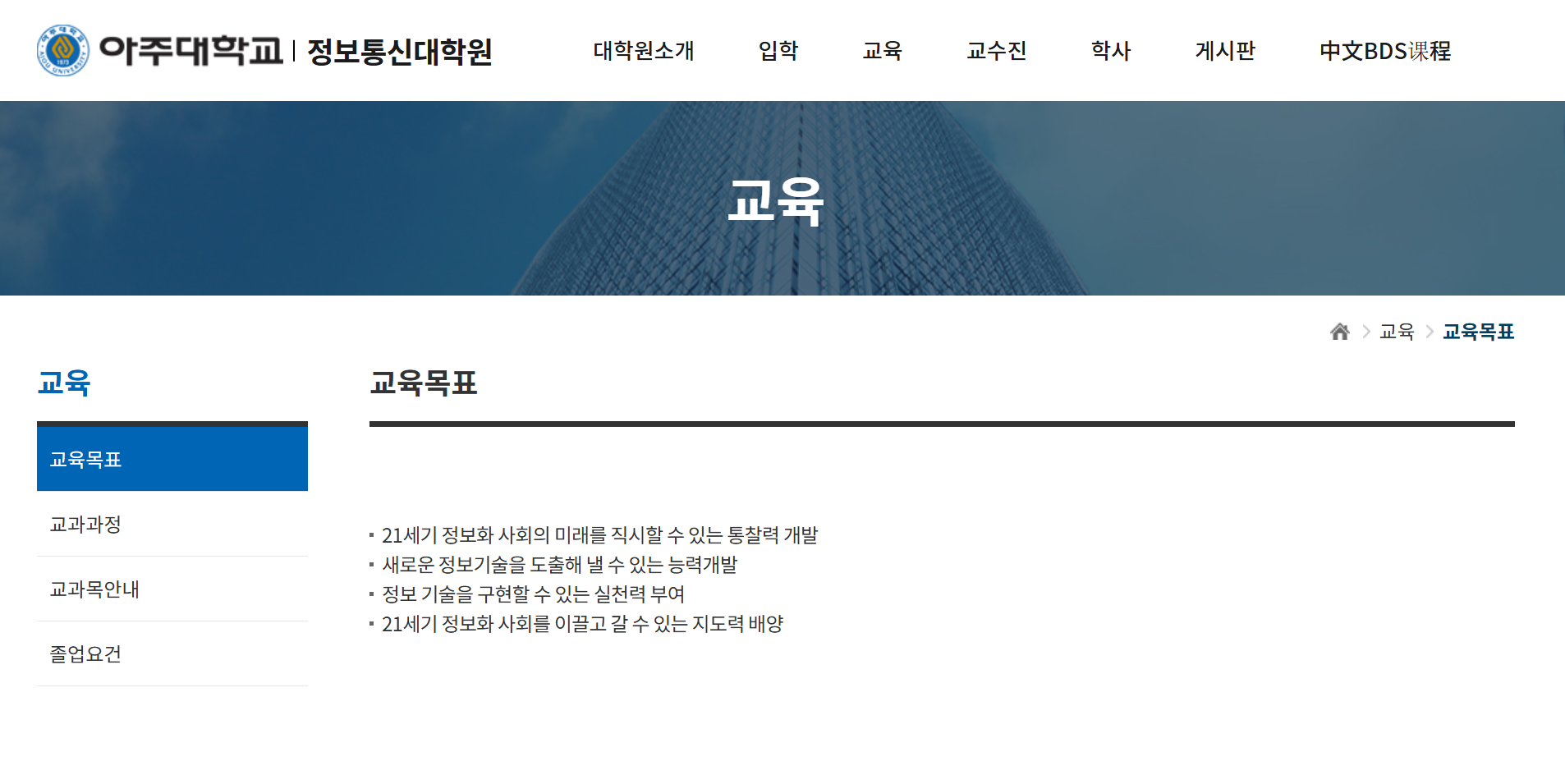 1. 아주대학교 정보통신대학원 학과 홈페이지 확인